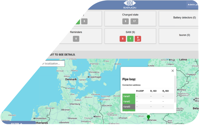 Kompleksowy system zdalnego nadzoru wycieków w rurach preizolowanych. Współpracuje z urządzeniami serii RAT firmy RATMON, odczytując zdalnie dane i alarmując użytkownika w sytuacji krytycznej.